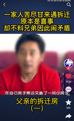 一直以来,一家人相处得挺好,基本没闹过什么矛盾,直到这三间房变成了拆迁户。