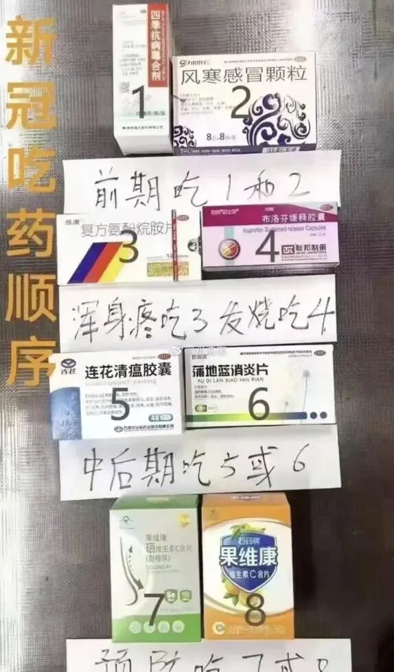 秋葵妈的朋友圈里,有很多人都在传“新冠肺炎一般治疗方法表” ,以及“新冠吃药顺序”图等。